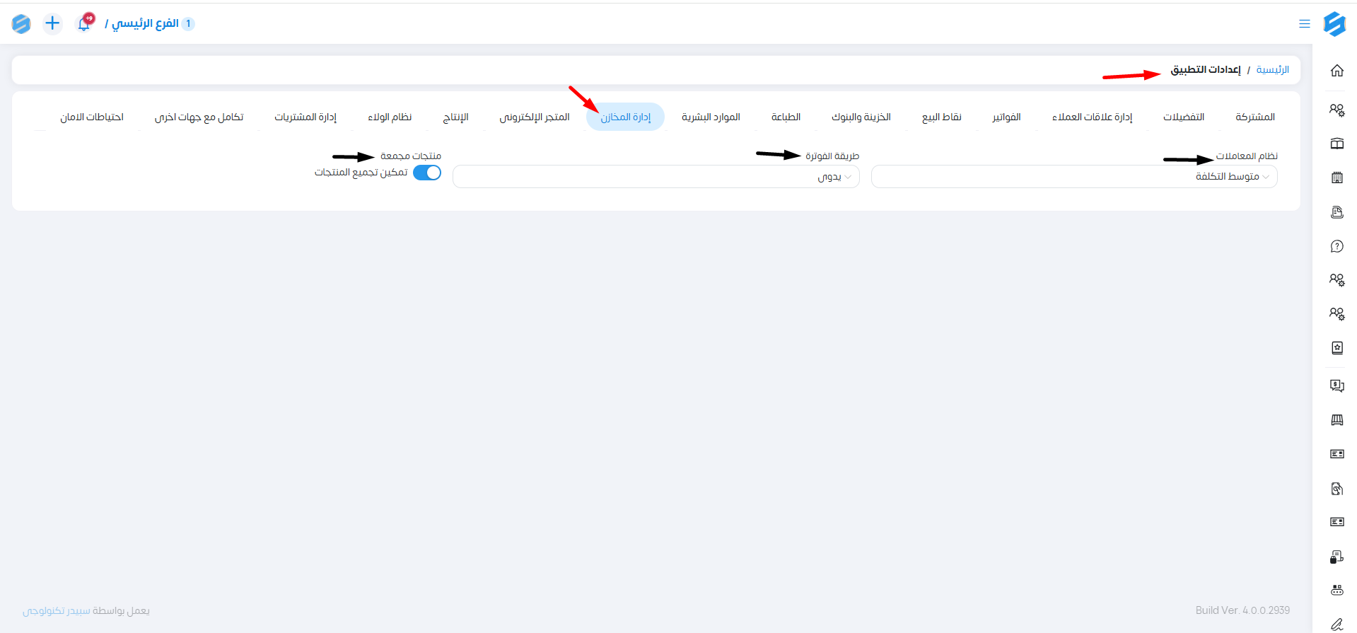 من خلال إعدادات إدارة المخازن... يمكننا التحكم ببعض الإعدادات الخاصة بنظام إدارة المخازن مثل: