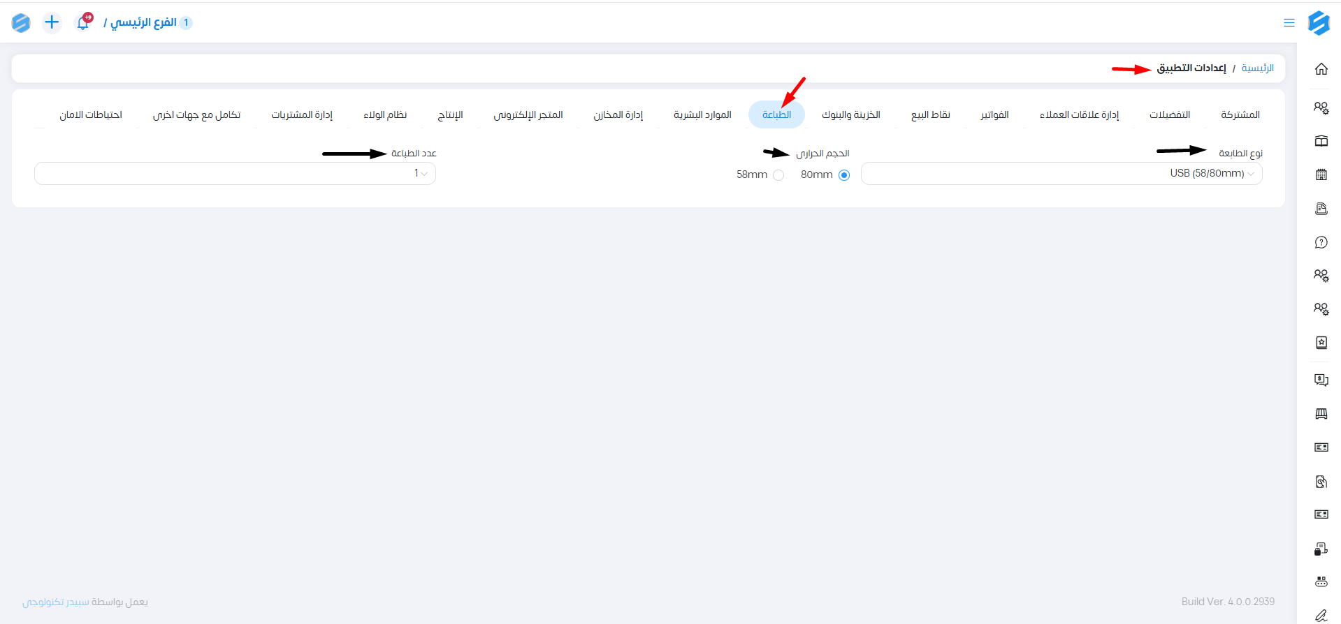من خلال إعدادات الطباعة.. يمكننا التحكم بإعدادات الطباعة على النظام مثل: