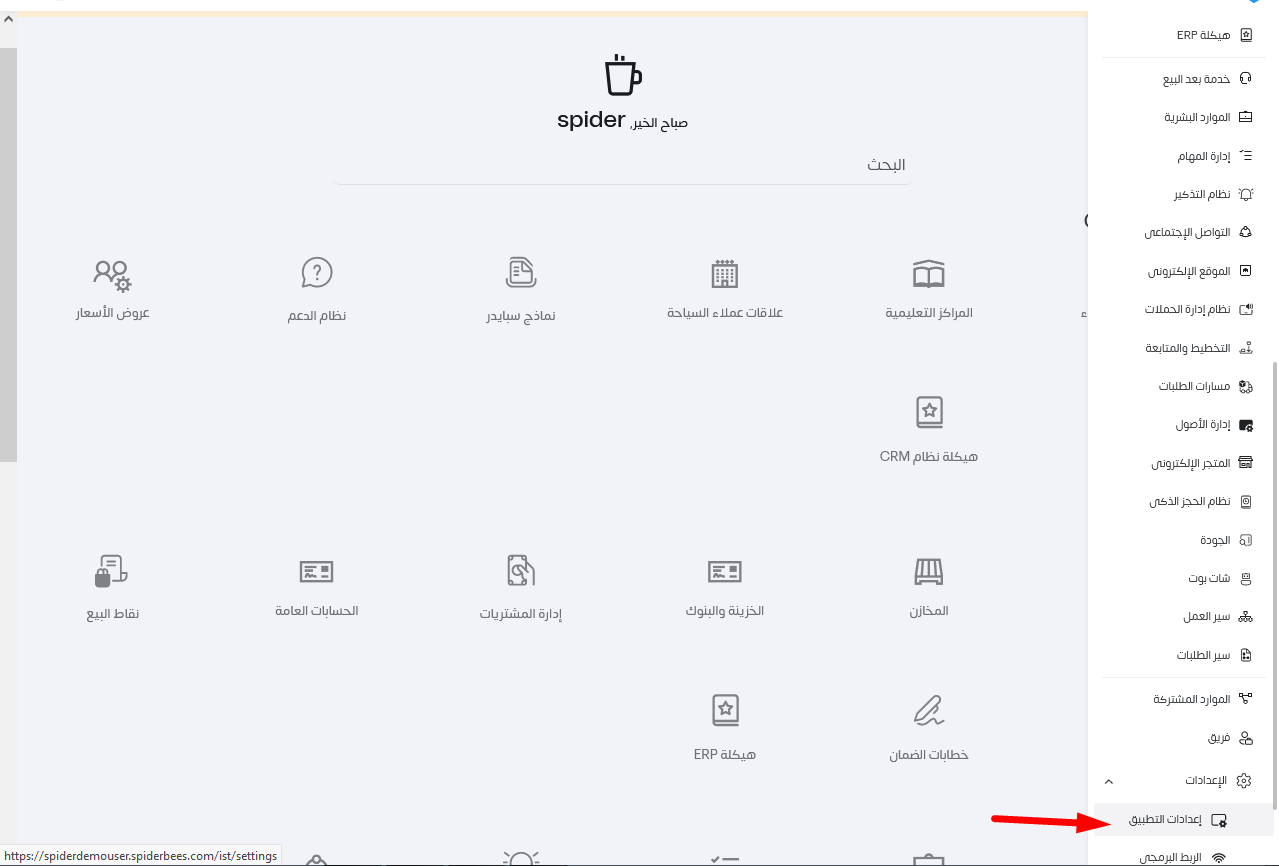 للوصول إلى إعدادات التطبيق .. يتم من خلال القائمة الجانبية .. ونضغط على إعدادات التطبيق
