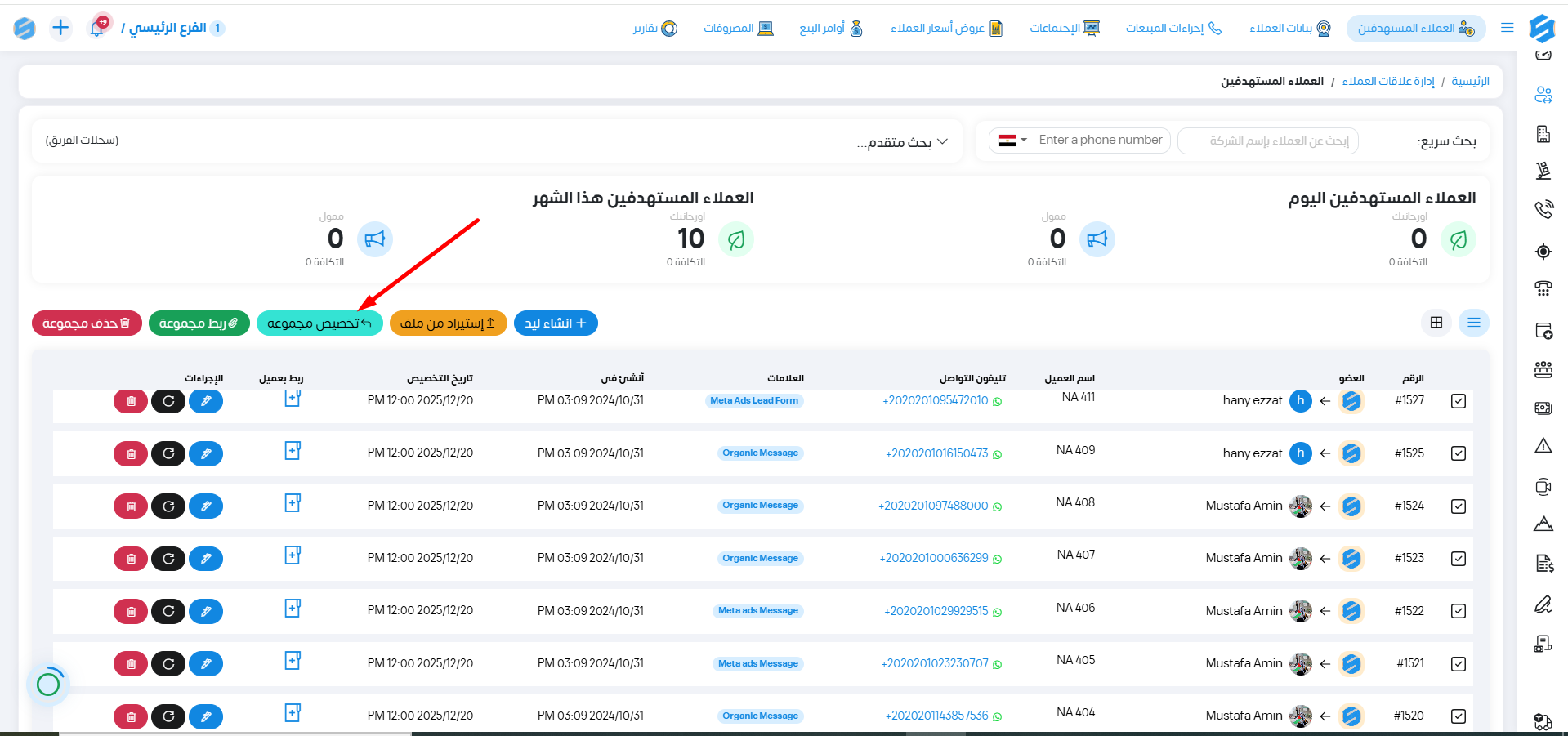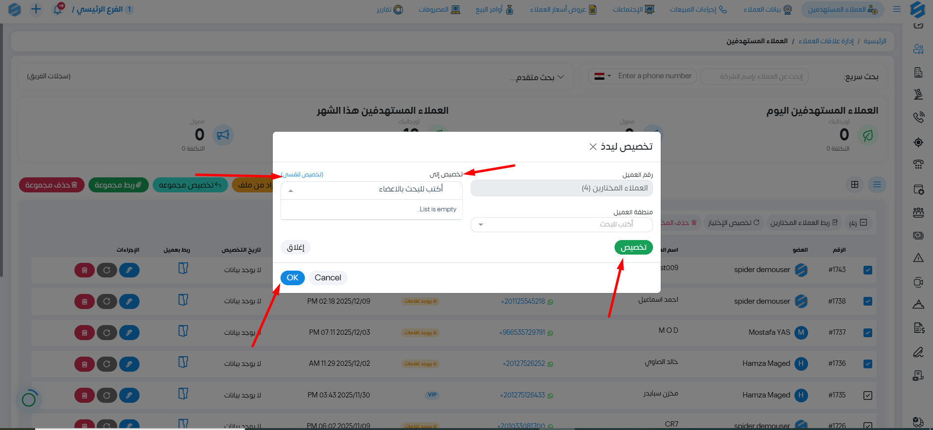 تخصيص العملاء المستهدفين لاعضاء الفريق
