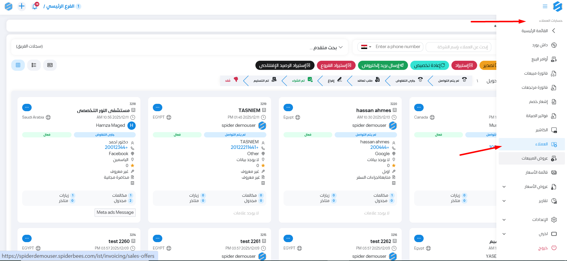 هنختار من القائمة الموجودة بالجانب العملاء
