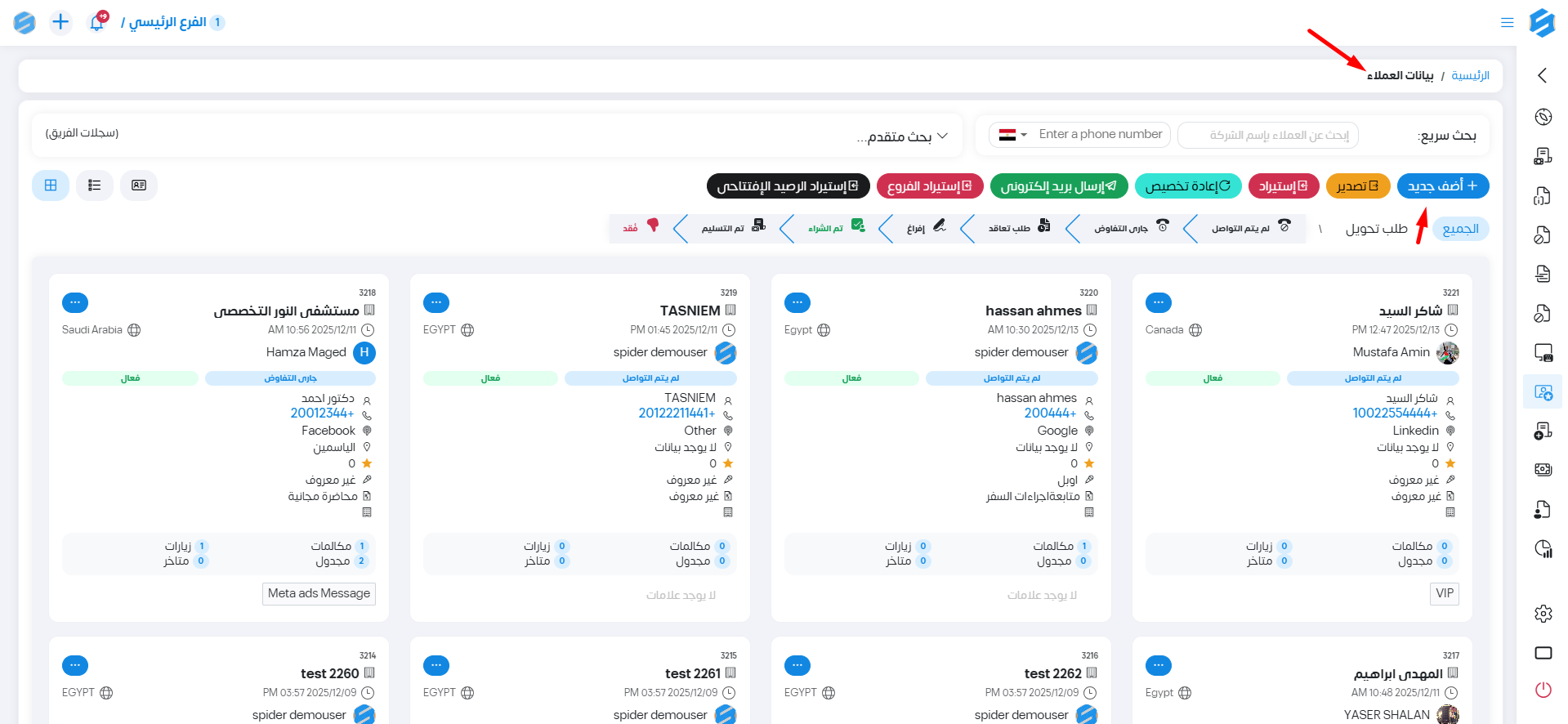 لإنشاء العميل نقوم بالدخول على العملاء