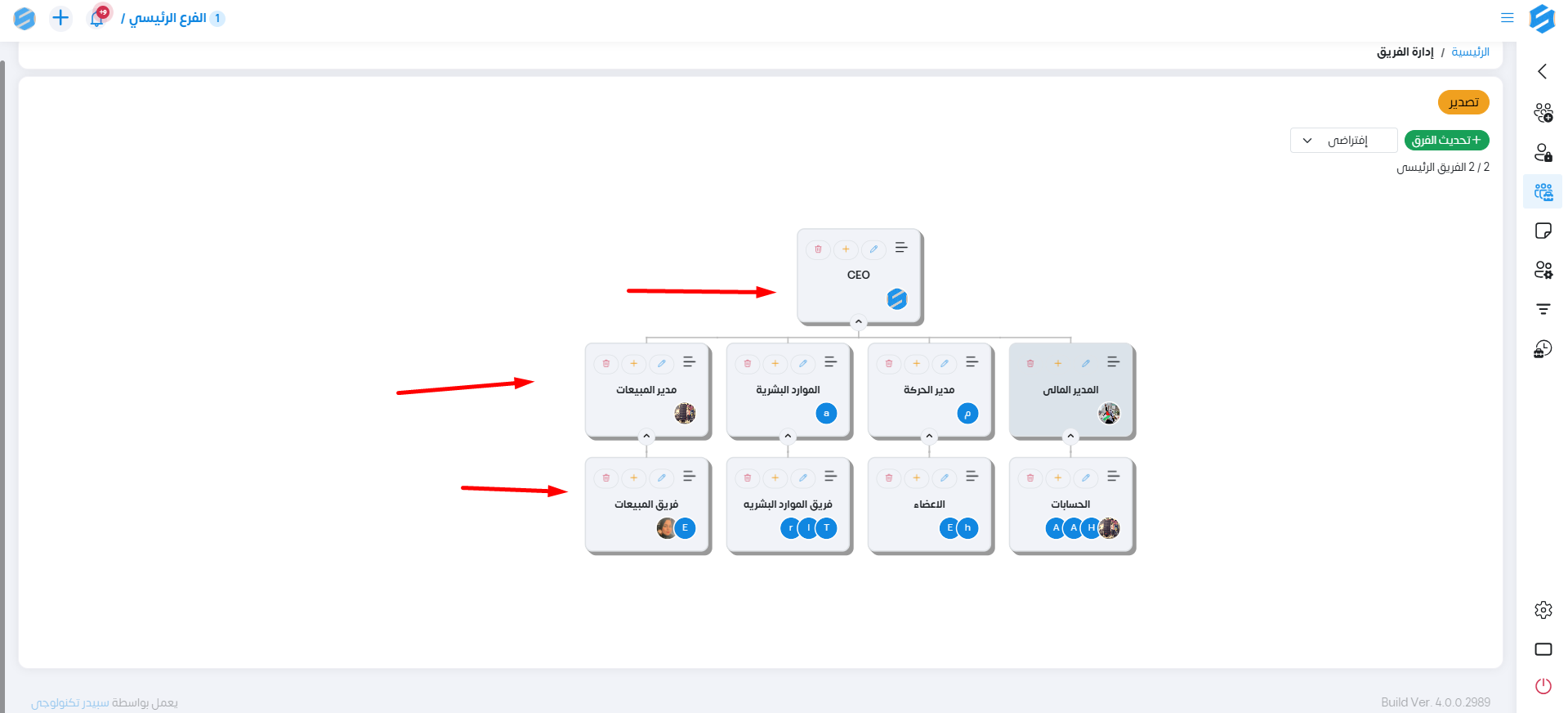 نستمر في اضافة فرق في المستوى الثاني (غالبا مديرين الأقسام).