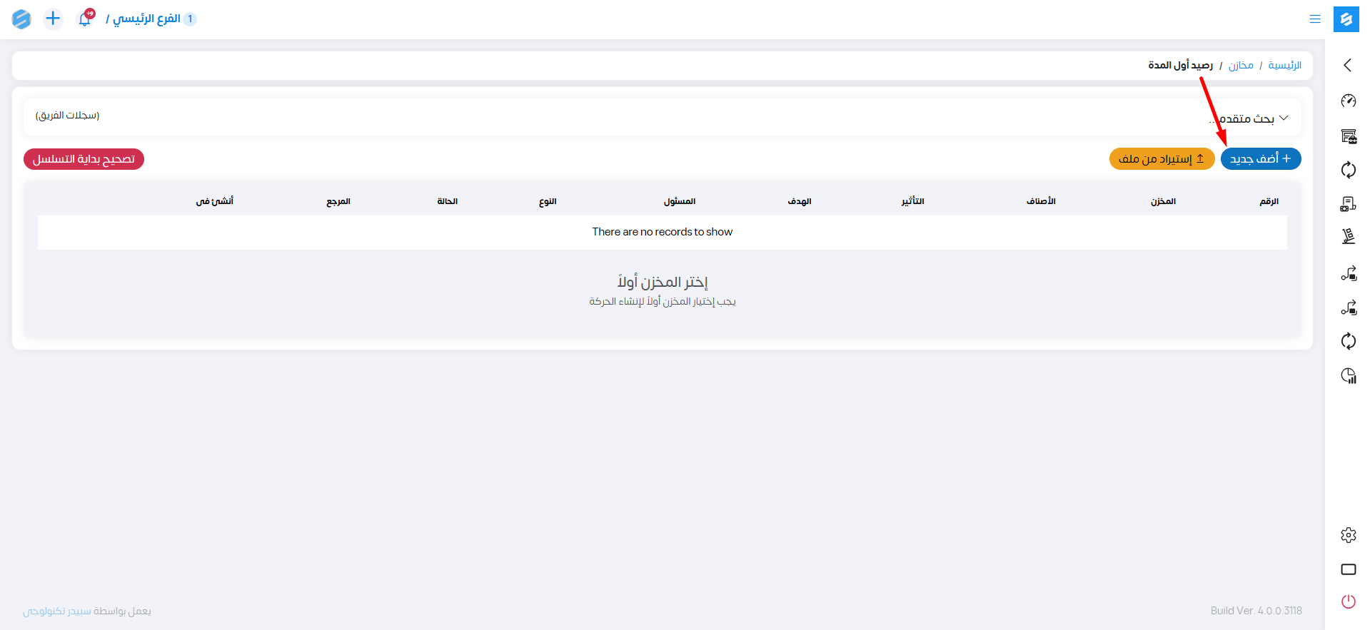 بعد ملئ البينات ورفع الملف نقوم بأختيار المخزن المراد رفع الأصناف له .