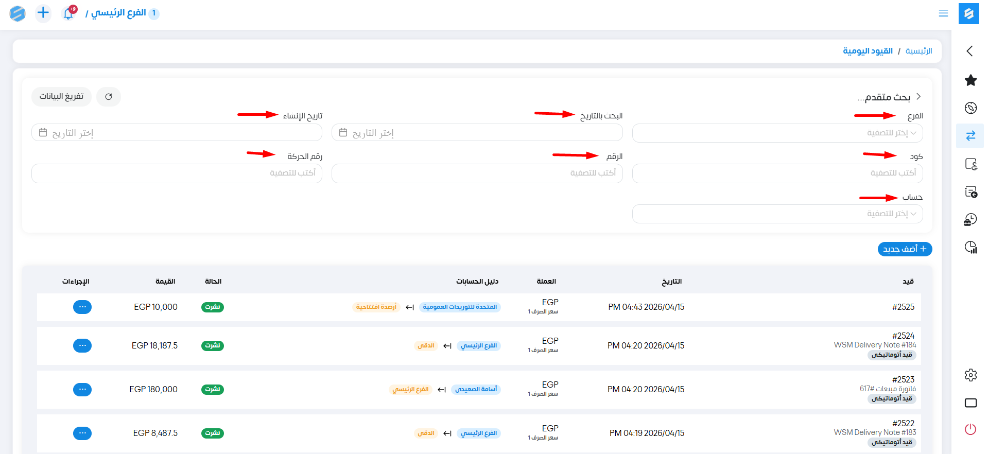 يمكننا البحث في القيود اليومية بالتالي: