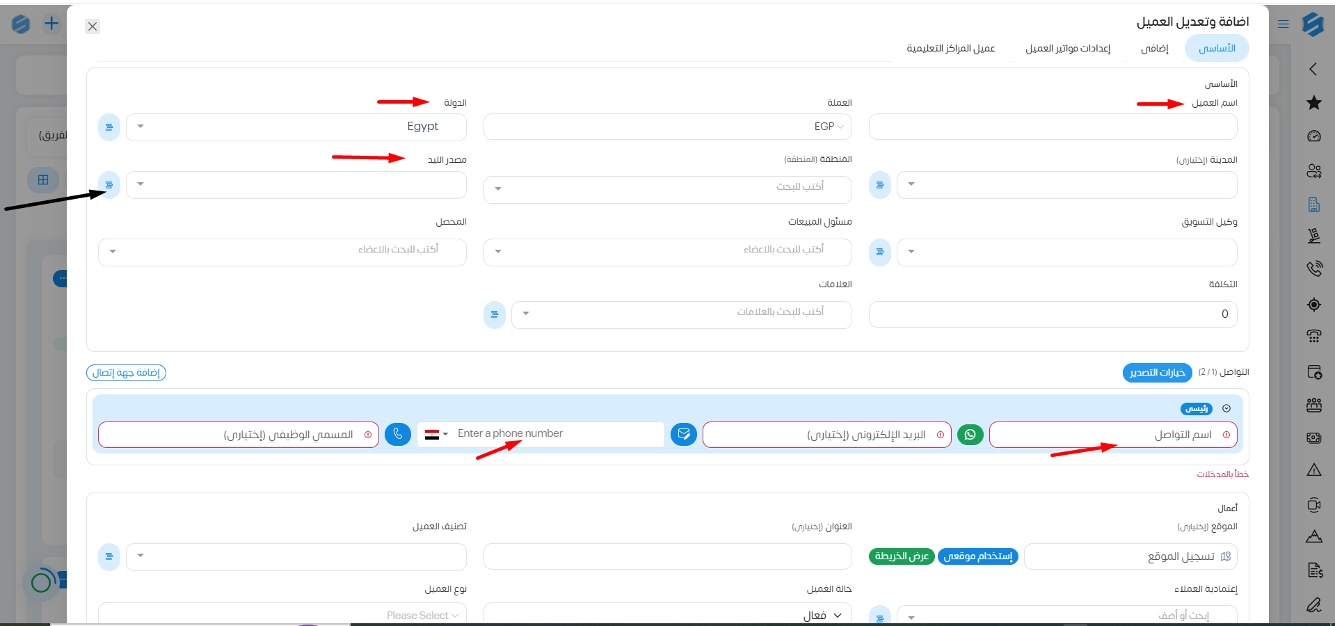 - عند إنشاء العميل نقوم بالدخول على العملاء ,ثم نقوم بالضغط على أضف جديد