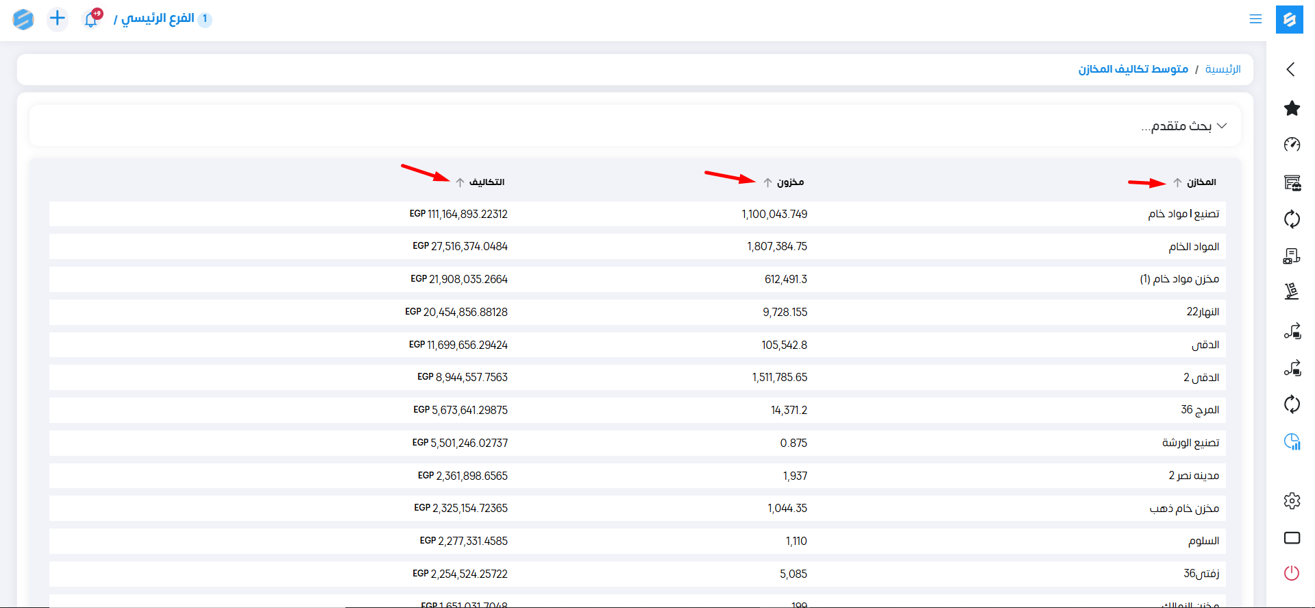 يظهر التقرير كل المخازن الموجودة عندي ، مخزون الأصناف الموجود في كل مخزن ، تكاليف كل مخزن من المخازن الموجودة .