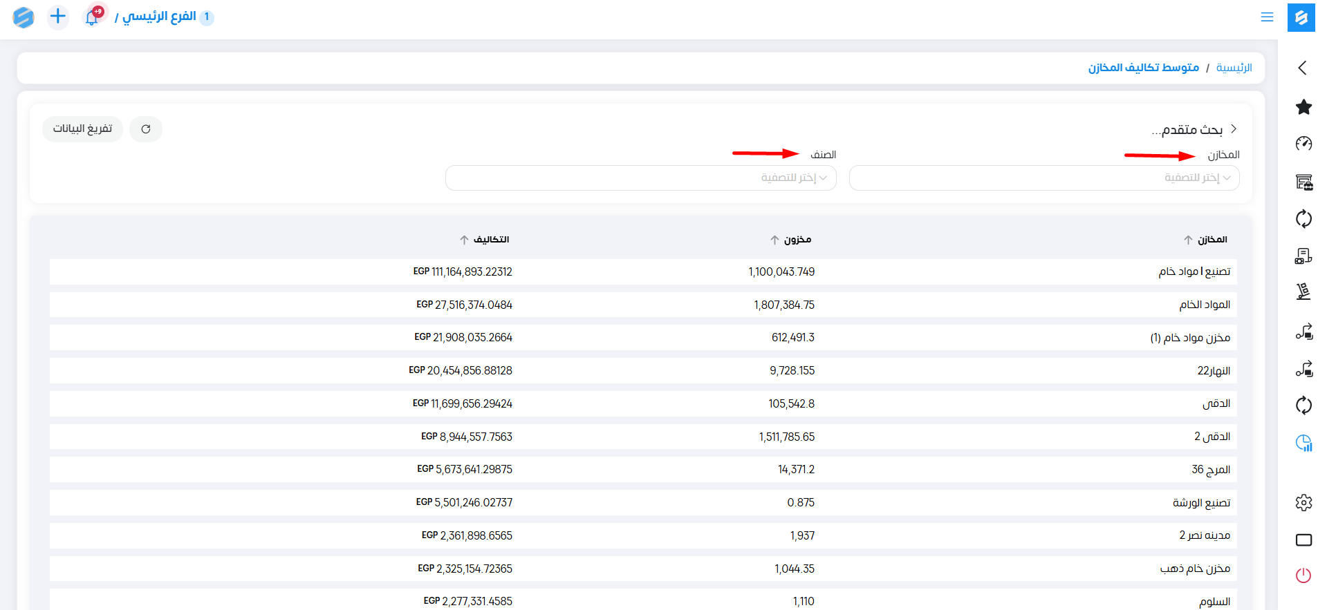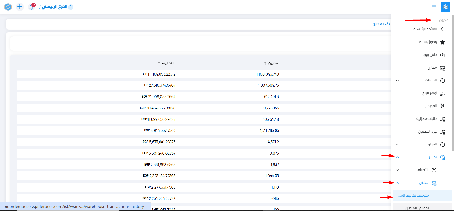 - تقرير متوسط تكاليف المخازن
