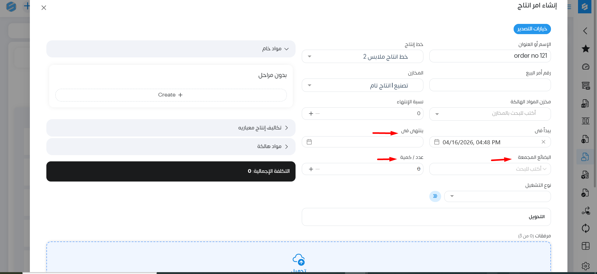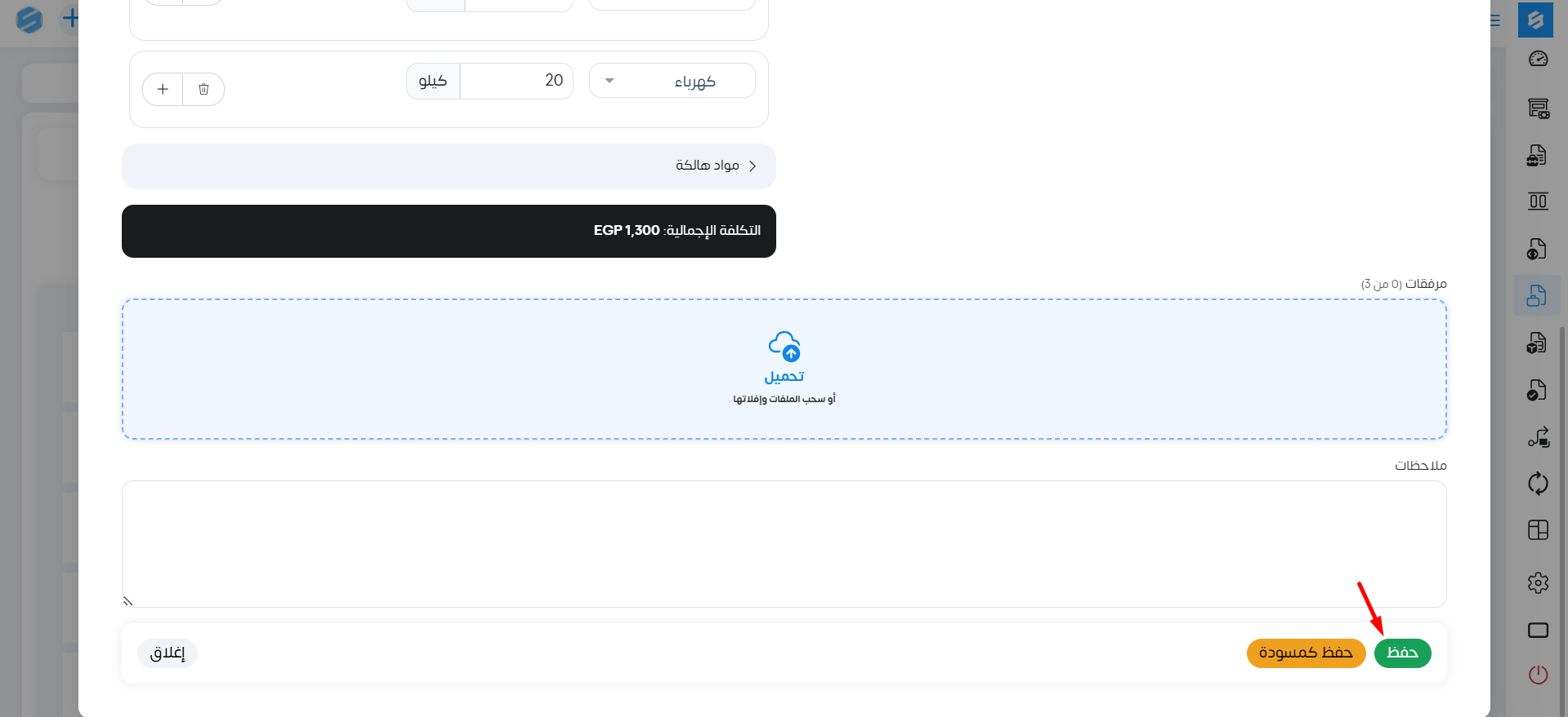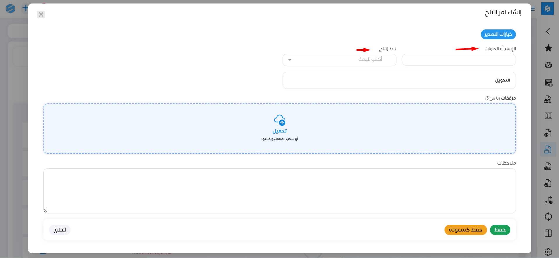 بعد ذلك نقوم بحفظ أمر الإنتاج سواء ك مسودة أو حفظ .