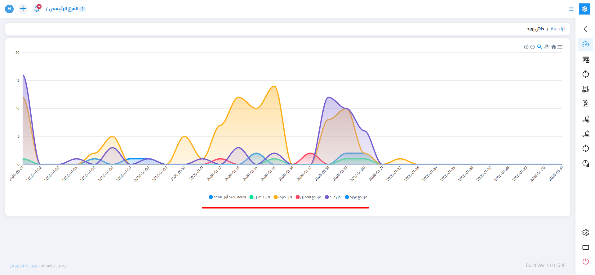 في شاشة الداش بورد الخاصة بالمخازن يظهر التالي: