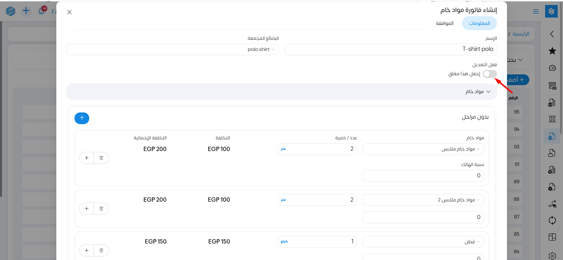 يمكننا قفل فاتورة المواد الخام فلا يمكن لأحد التعديل على هذه الفاتورة .