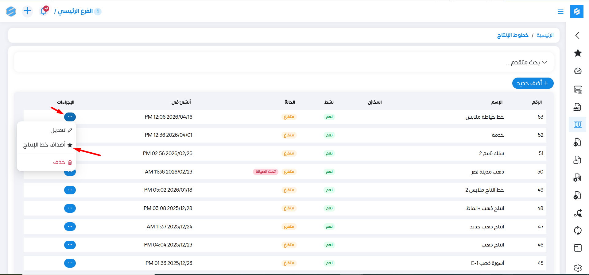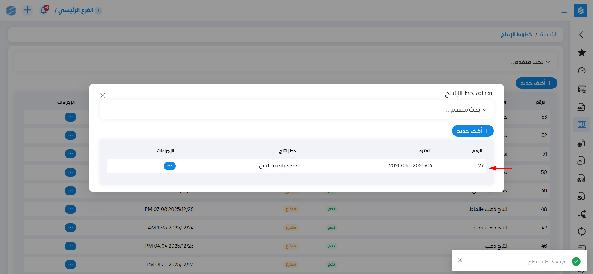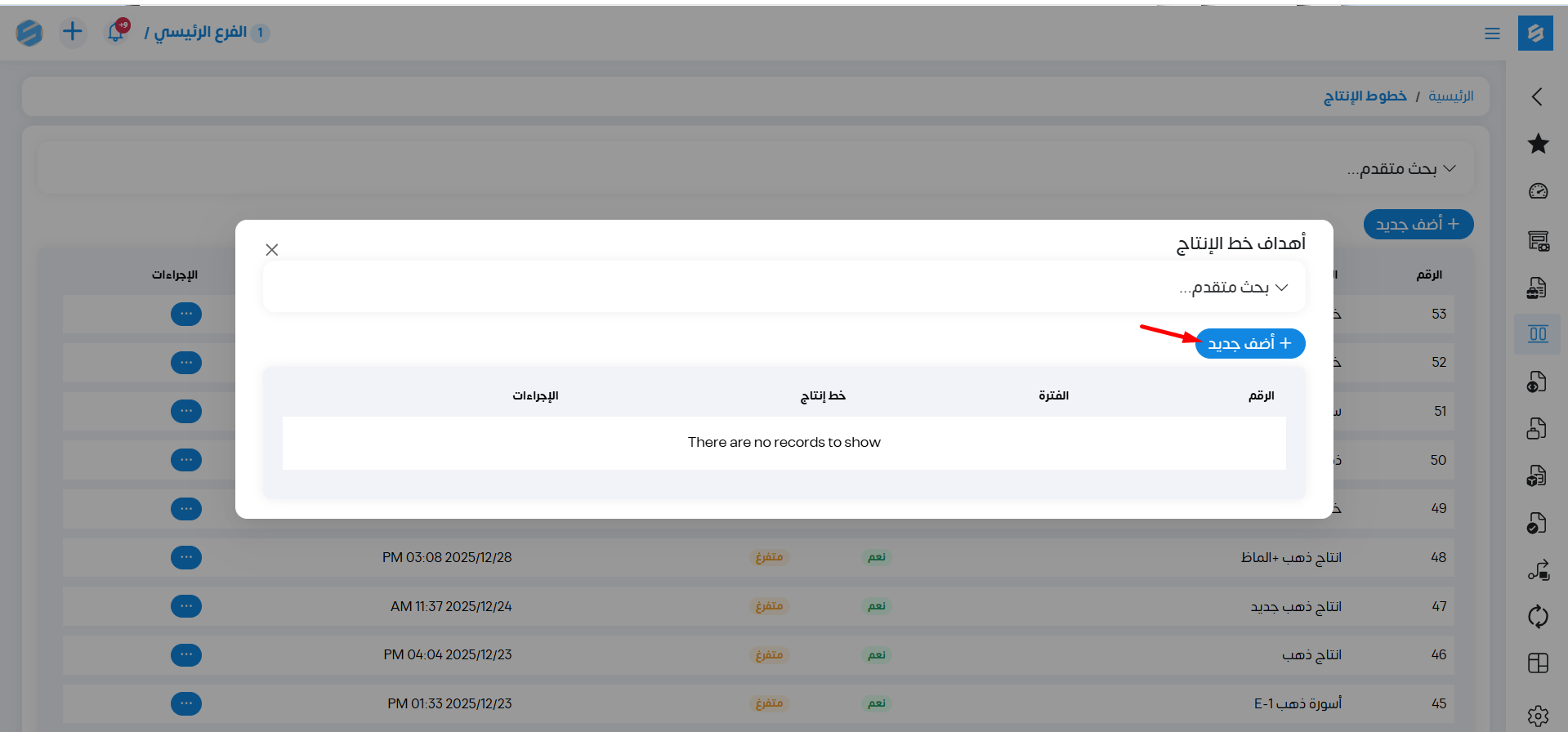 فيظهر لنا قائمة الأهذاف الموجودة بناء على الفترات لخط الإنتاج.