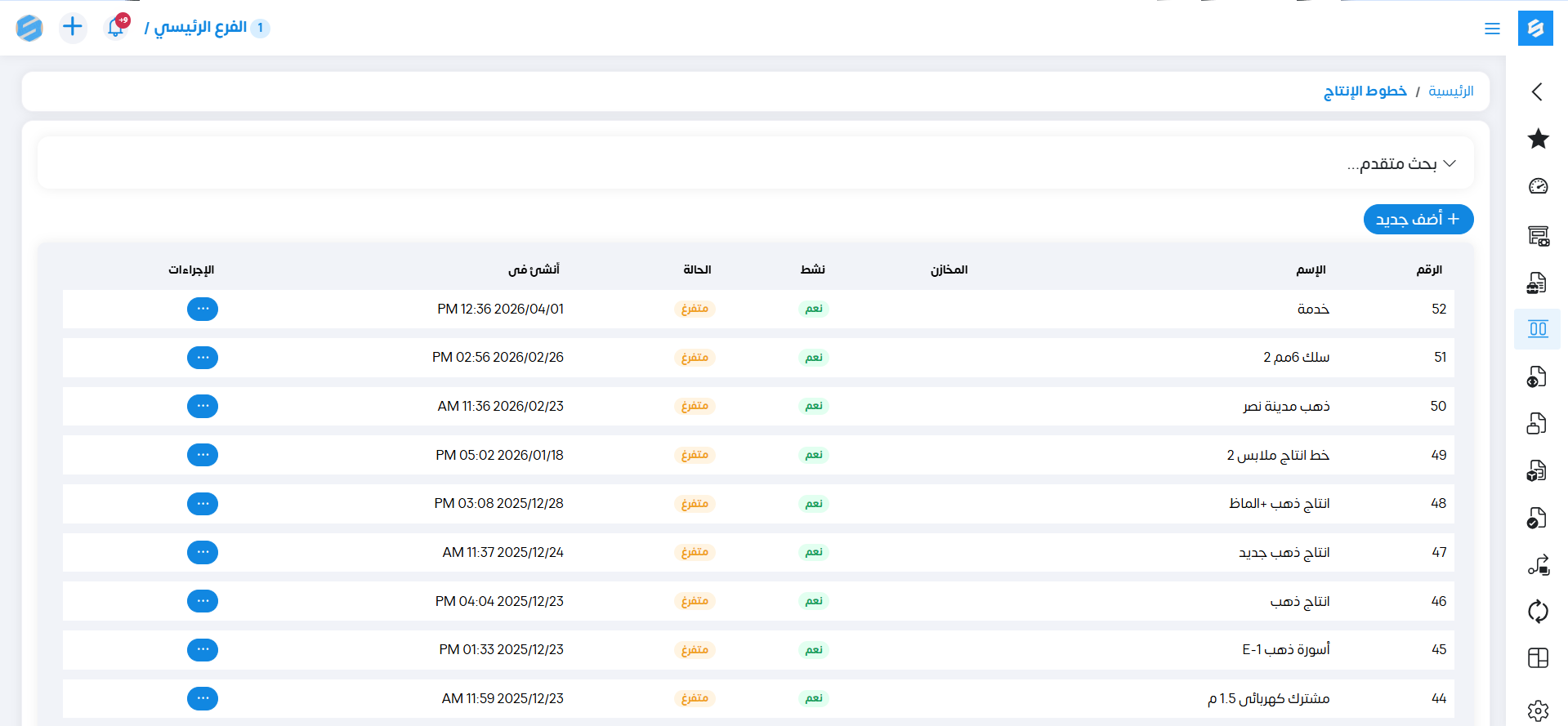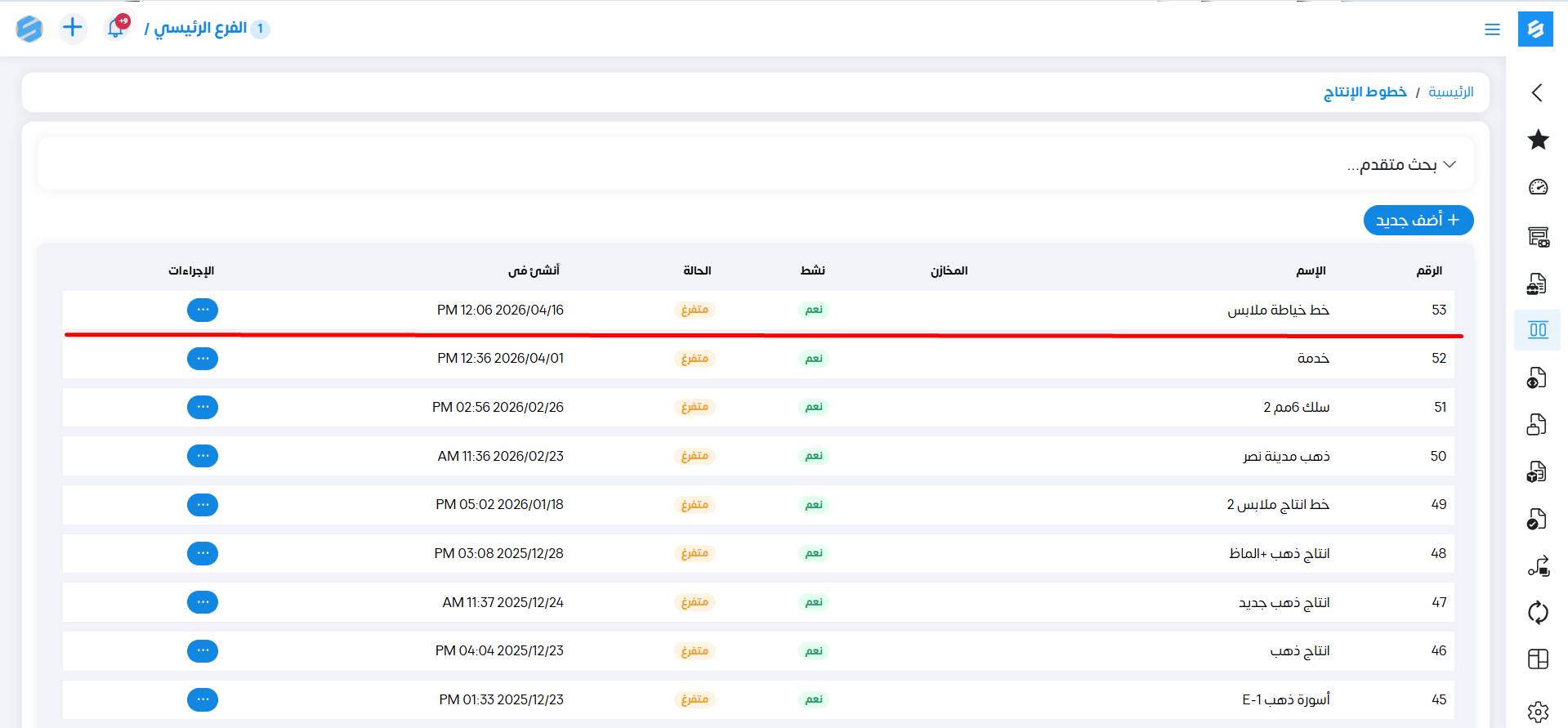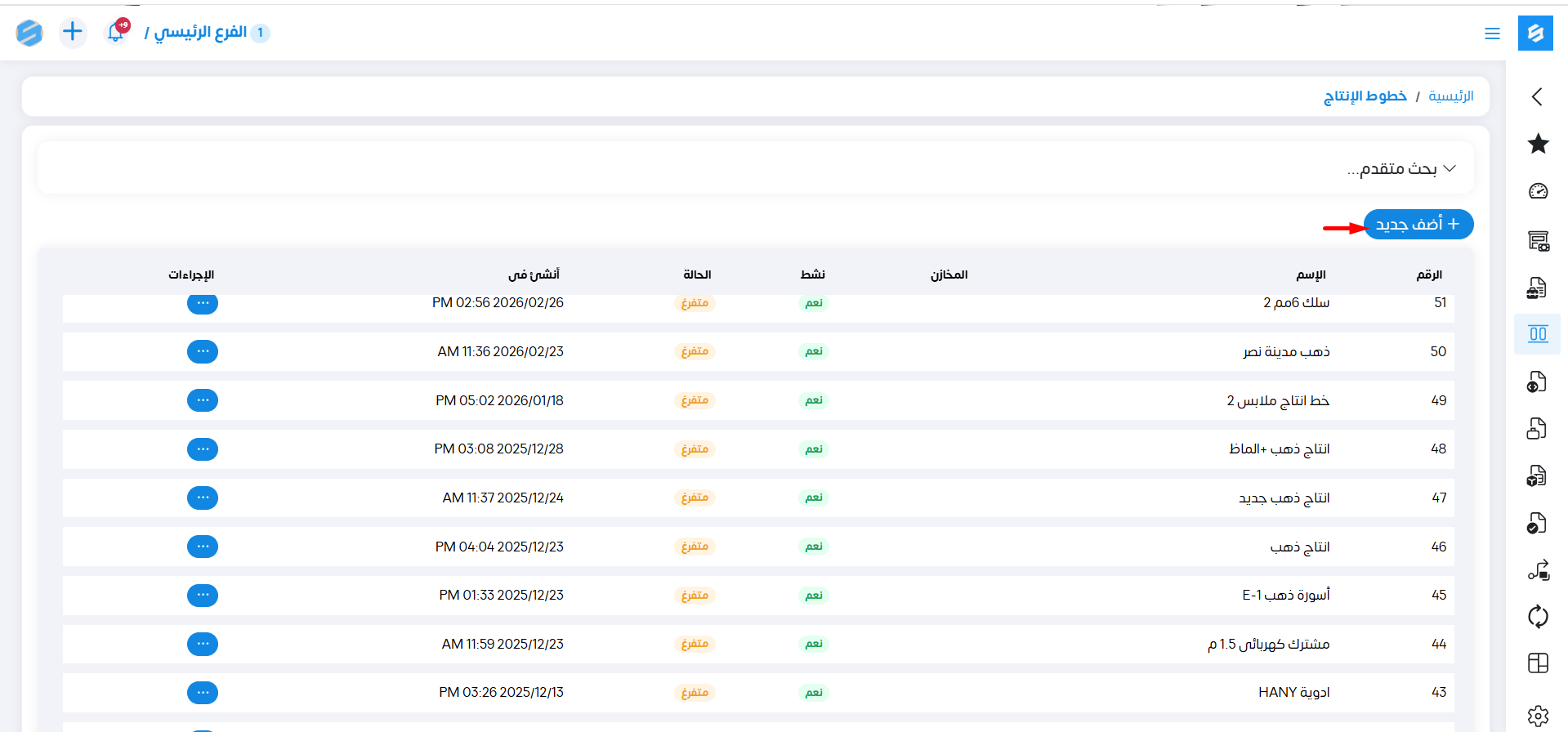 لإنشاء خط إنتاج جديد نقوم بالضغط على "أضف جديد"