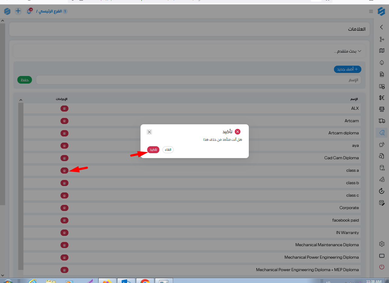 كذلك يمكننا التحكم فى حذف العلامات من خلال علامة الحذف
