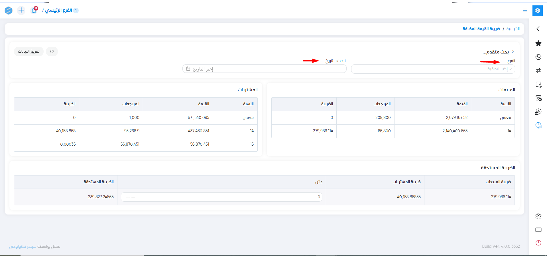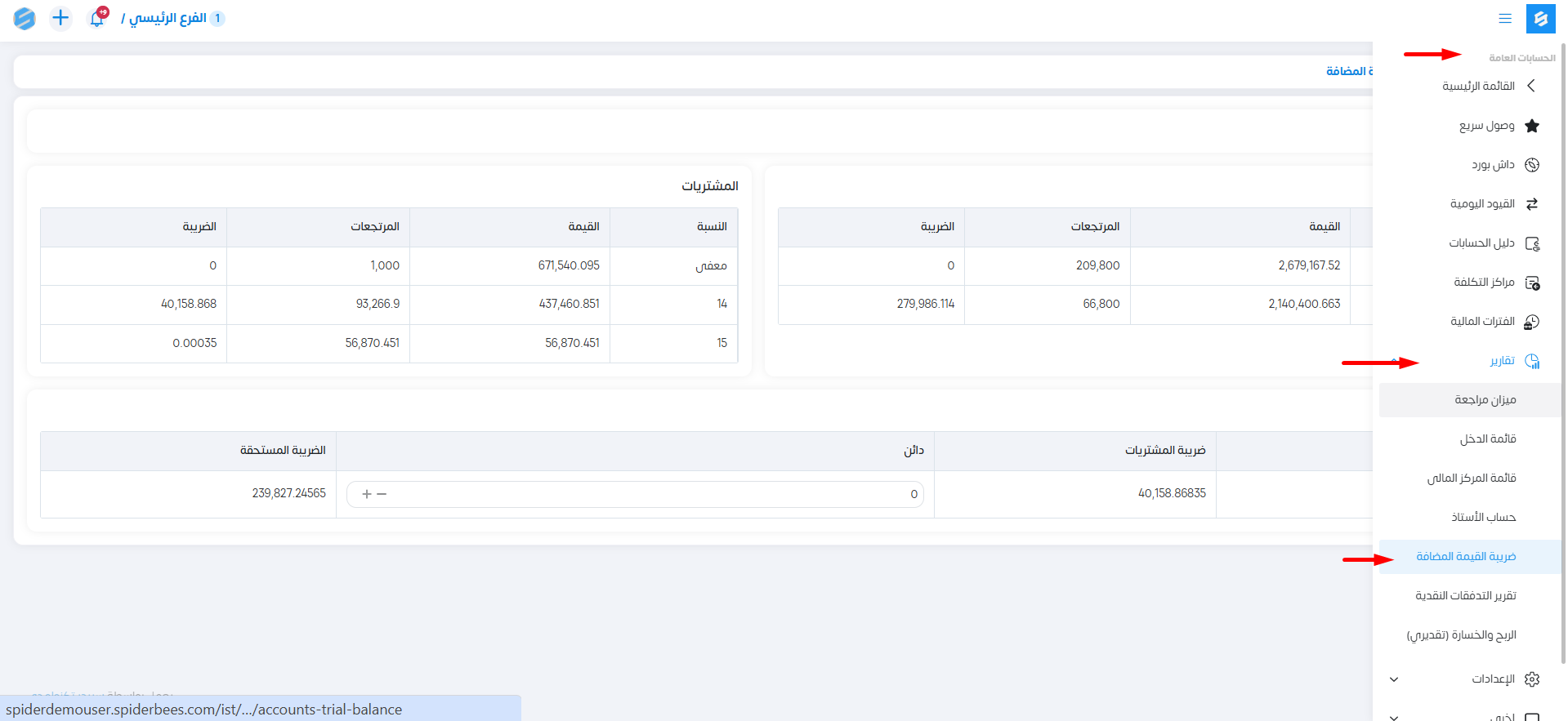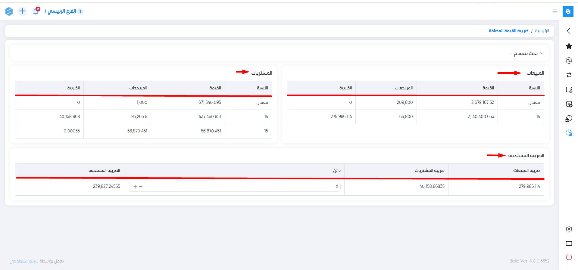 يمكننا هذا التقرير من معرفة الضرائب المقررة على المبيعات وكذلك المشتريات.