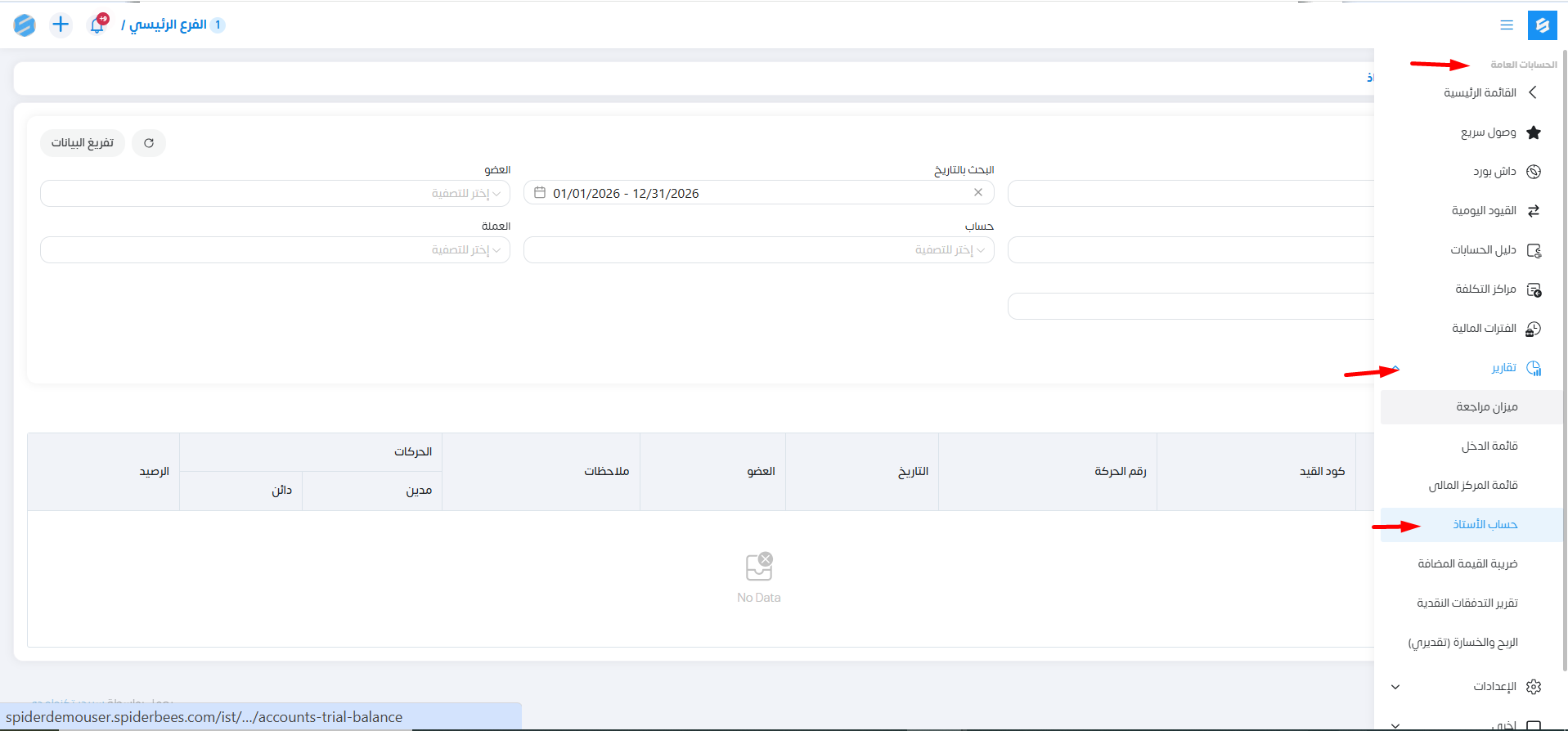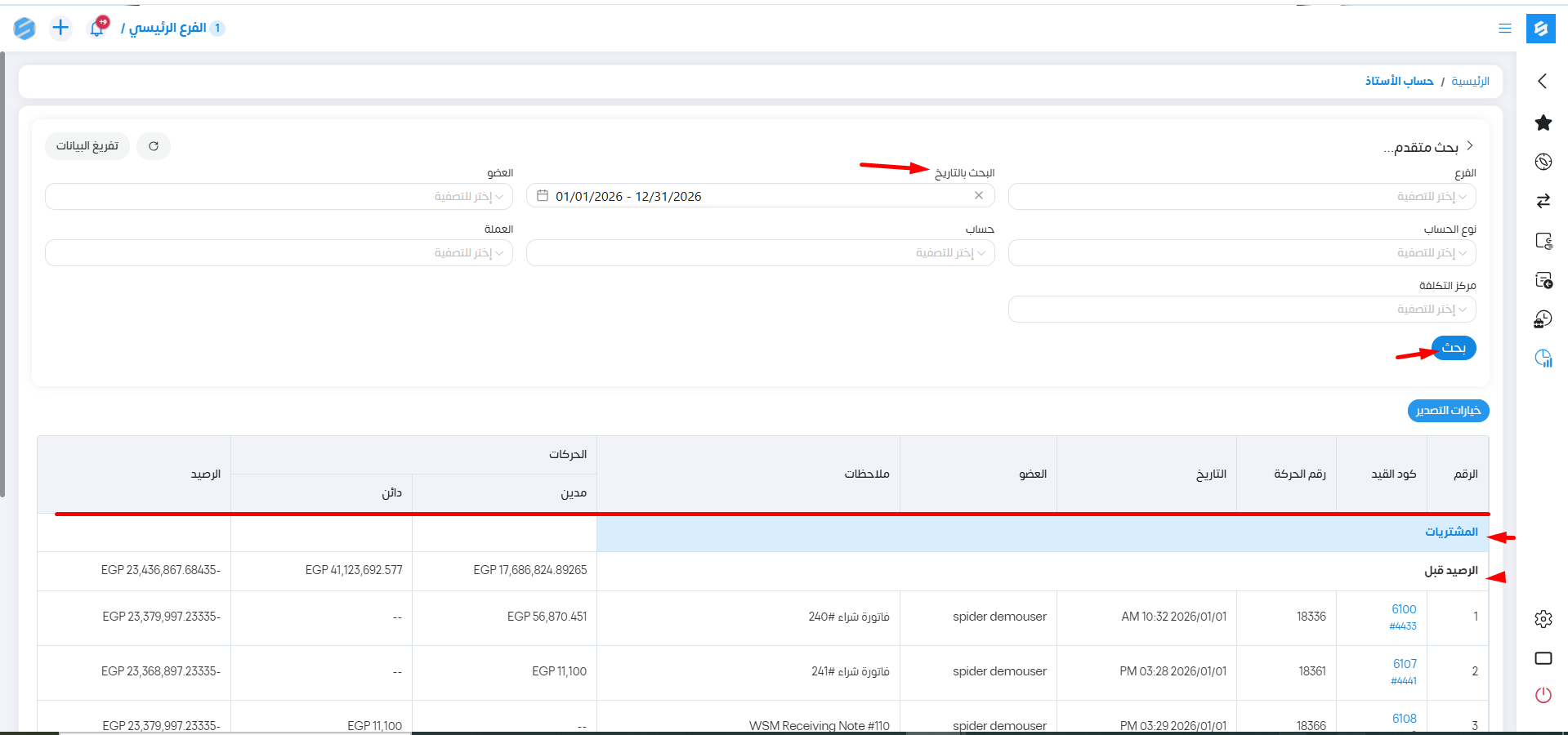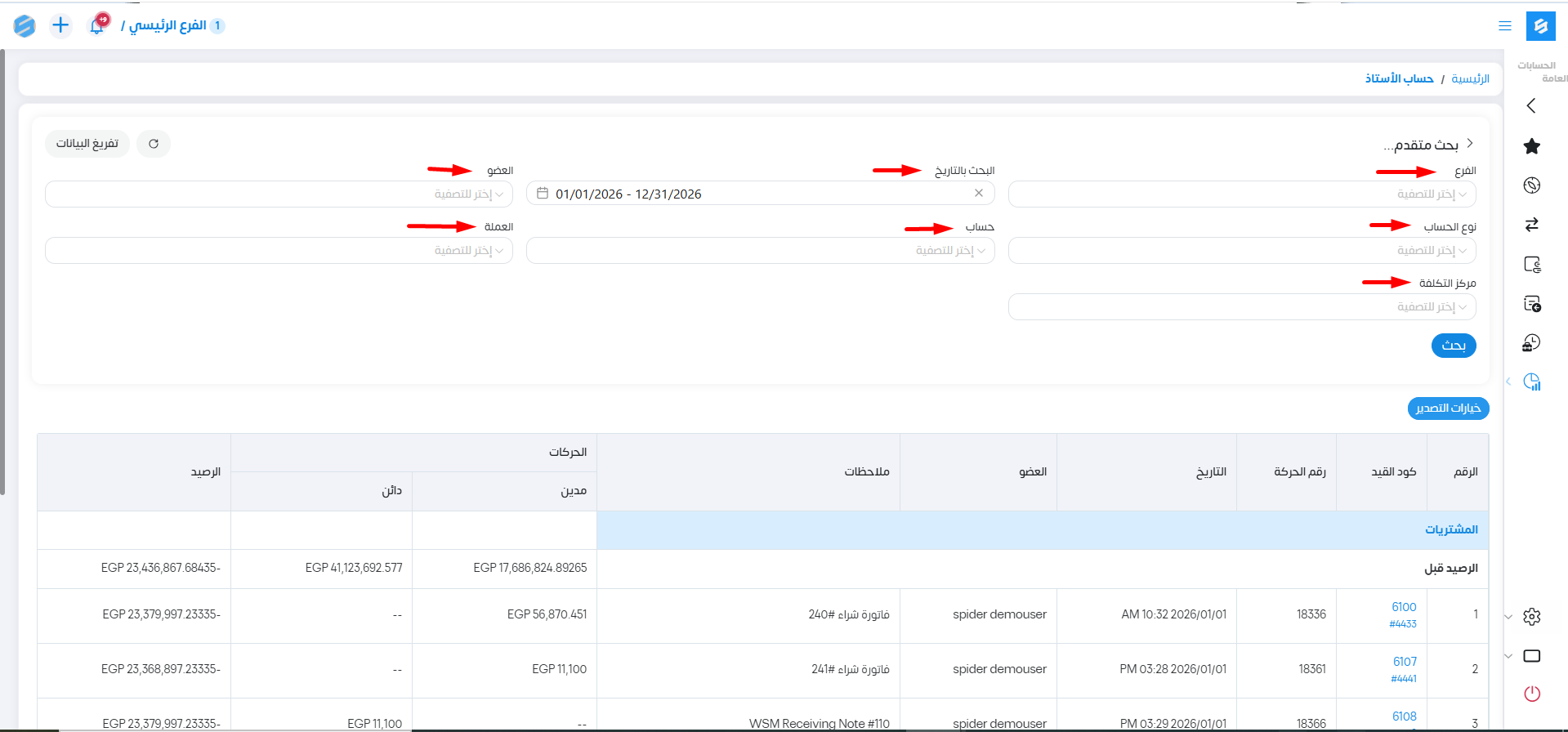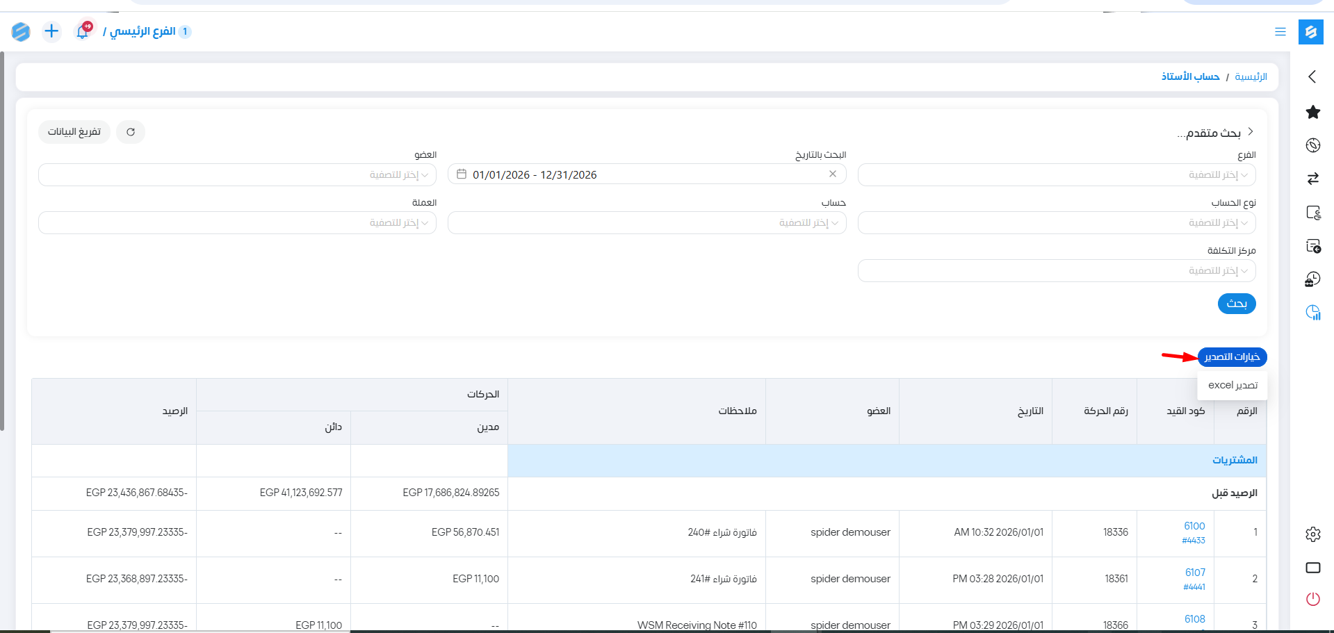 كل تفاصيل الحركات الناتجة عن المعاملات المحاسبية المختلفة.