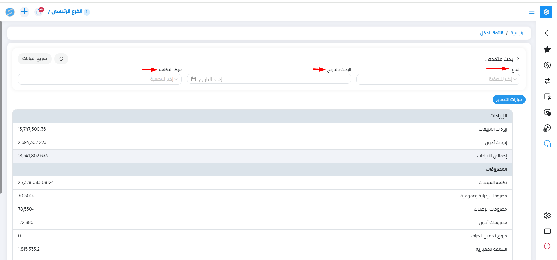 فى هذا التقرير يتم إظهار تحليلات الإيرادات المختلفة . والمصروفات . ويظهر لنا صافى المنح والدعم .