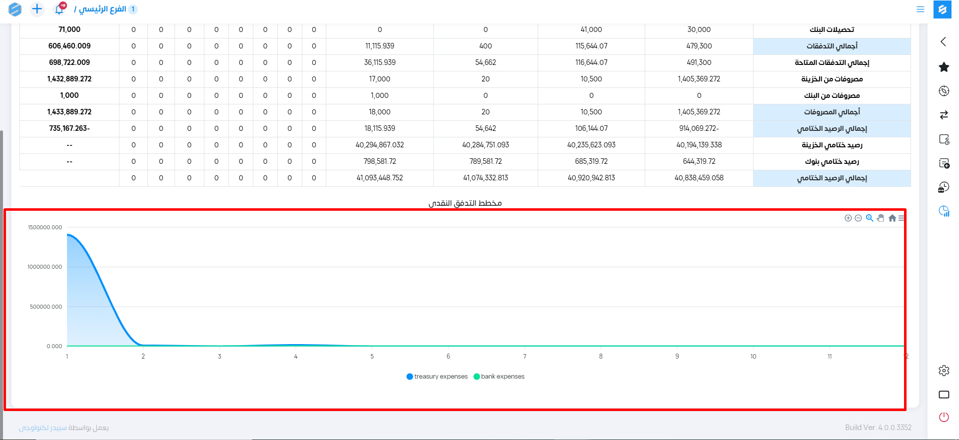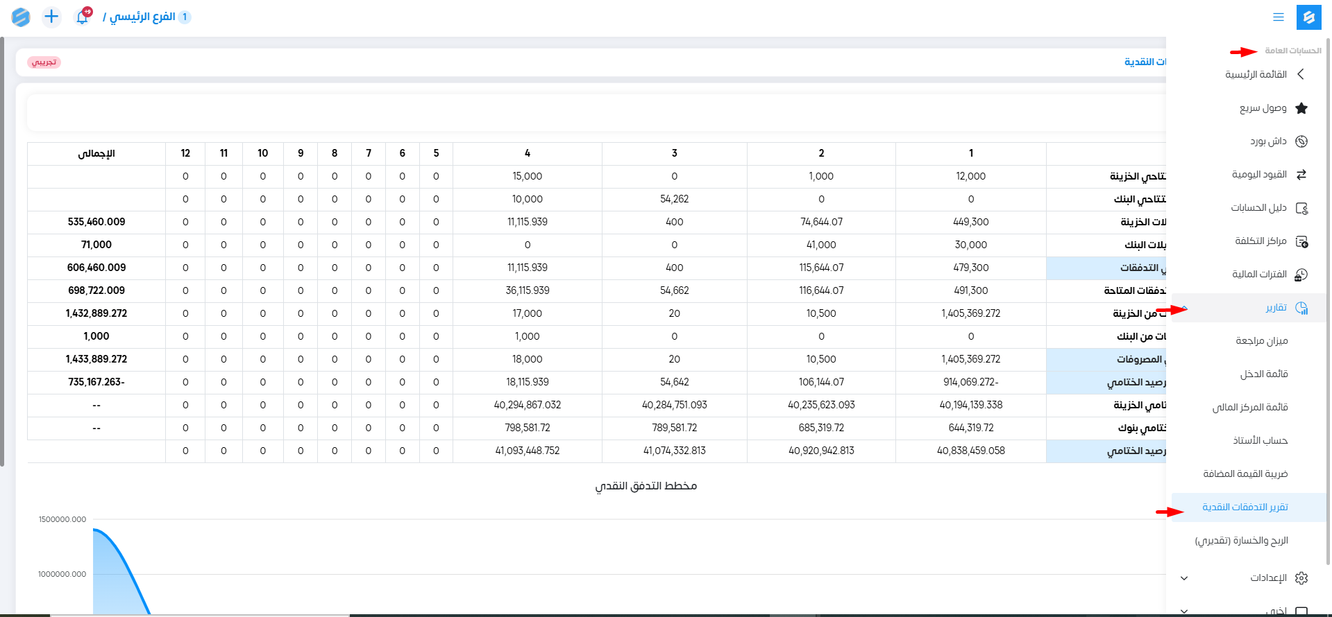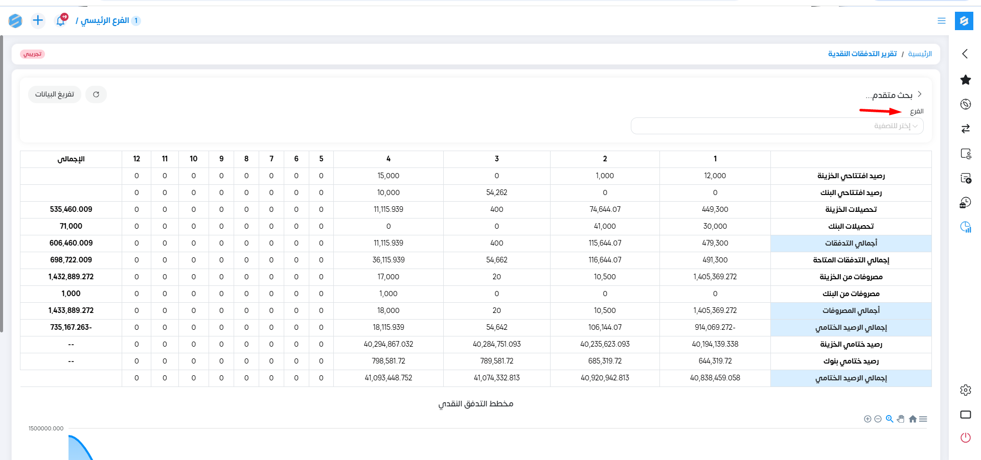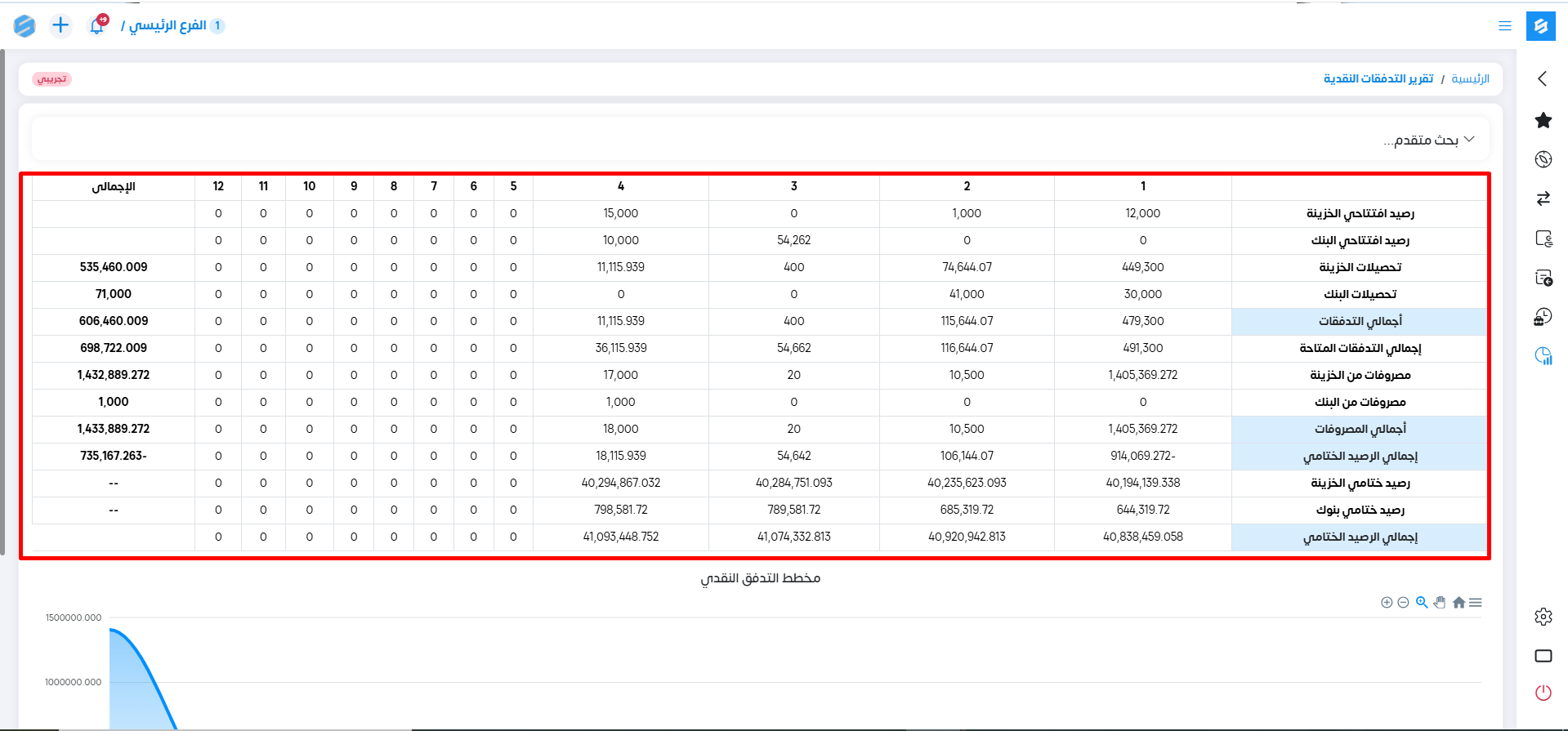 يوضح هذا التقرير: التدفقات الناتجة عن الإيرادات وموقعها فى كل حساب بالشهور.