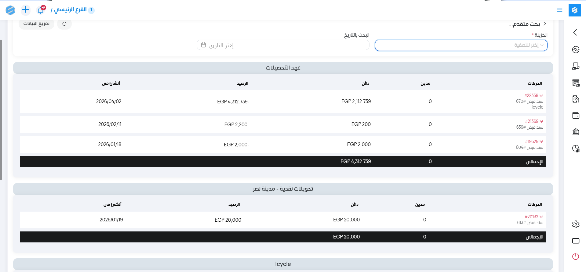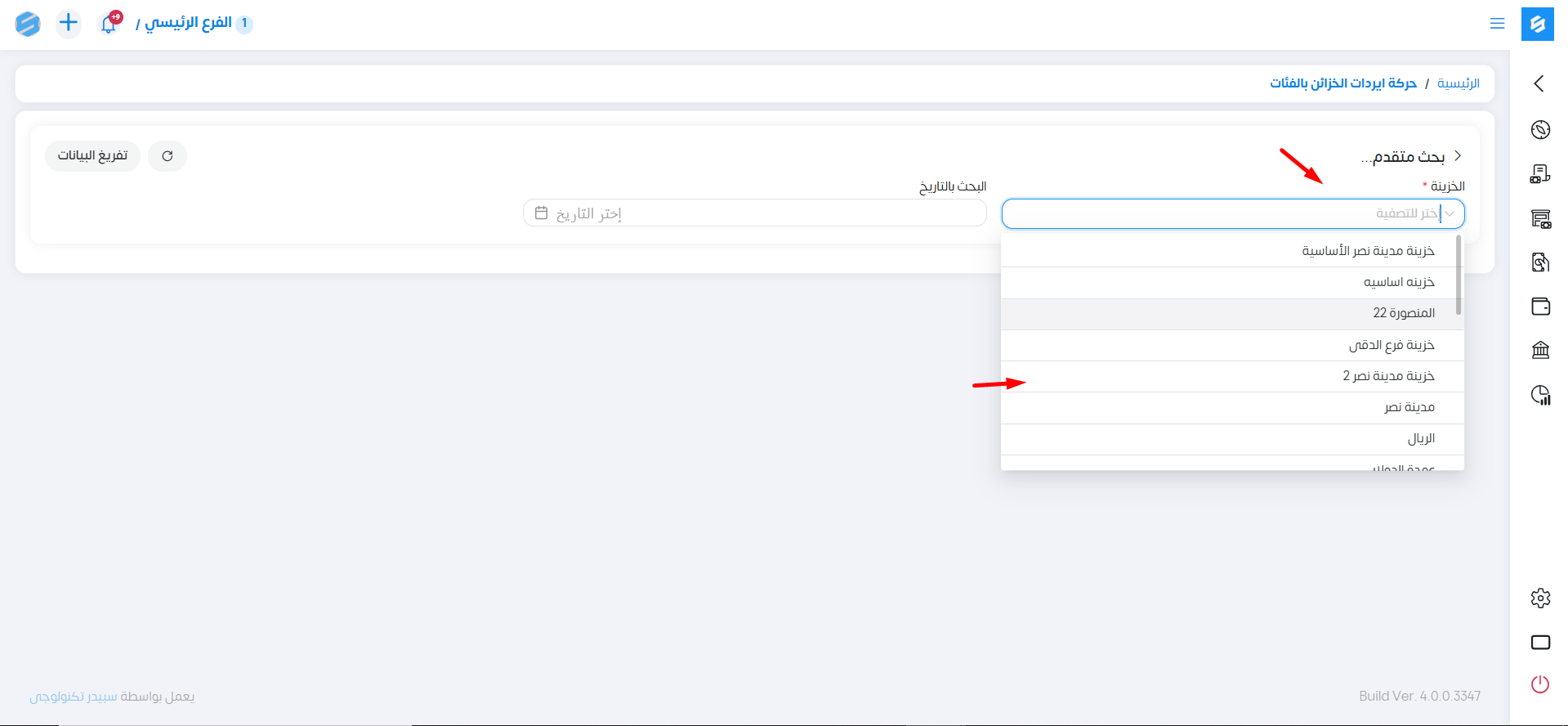 عند اختيار خزينة معينة في البحث في هذا التقرير يوضح التفاصيل التالية: