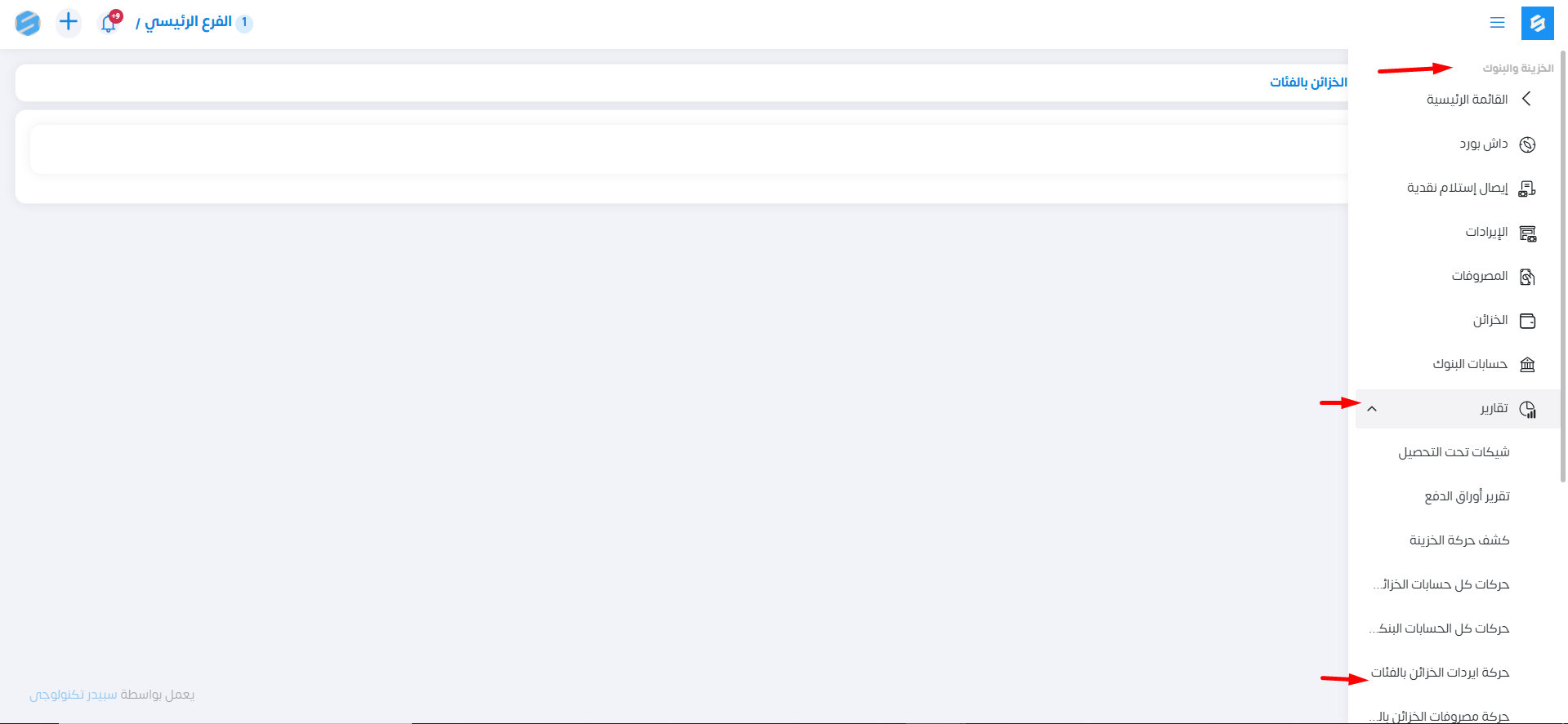 جميع تفاصيل الايرادات الخاصة بالخزينة بالفئات .