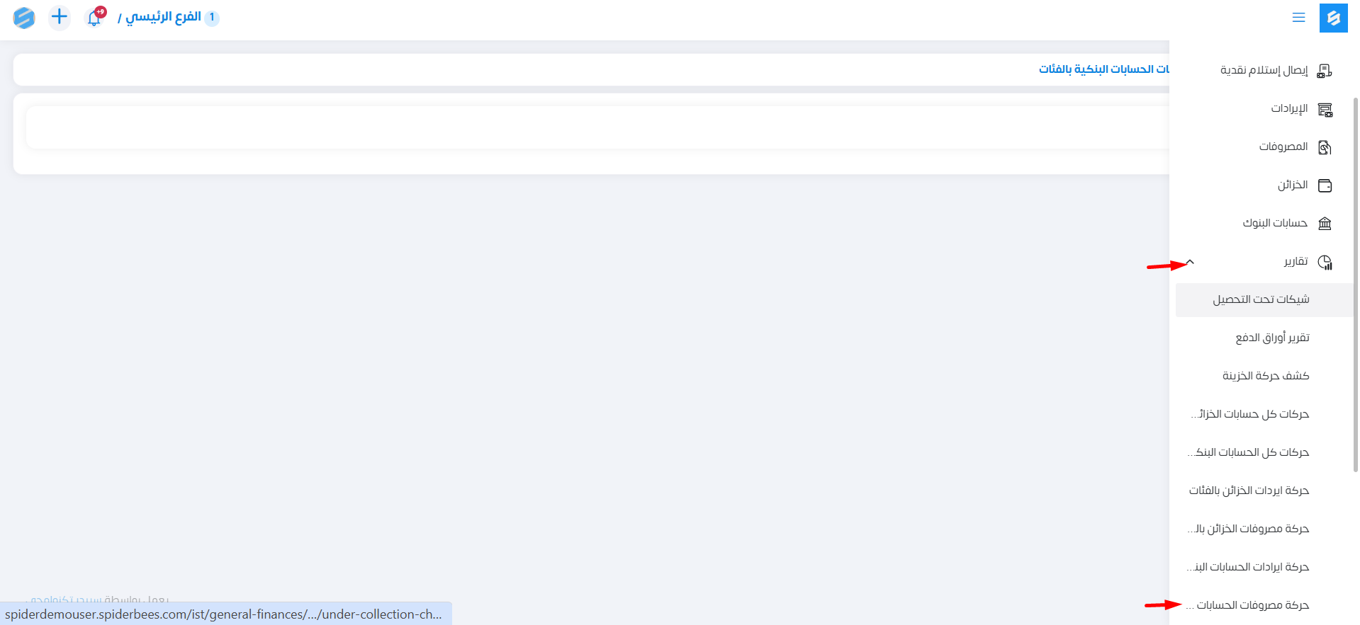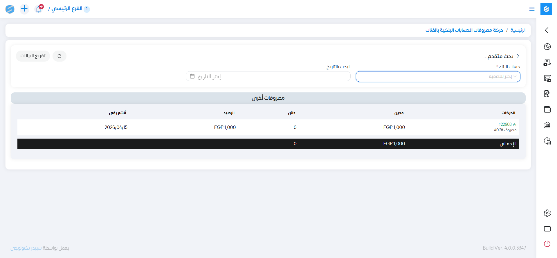 جميع تفاصيل المصروفات الخاصة بالحساب البنكي بالفئات.