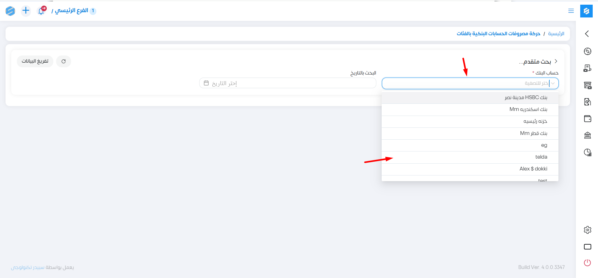 عند إختيار حساب بنكي في البحث في هذا التقرير يوضح التفاصيل التالية: