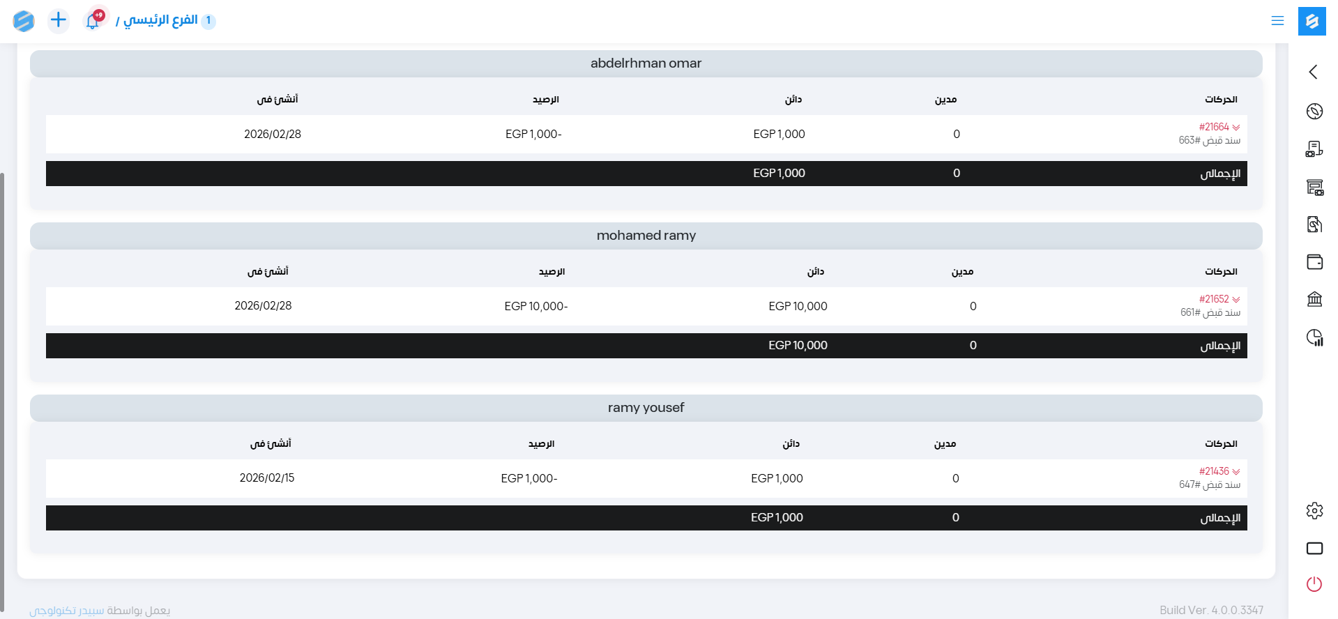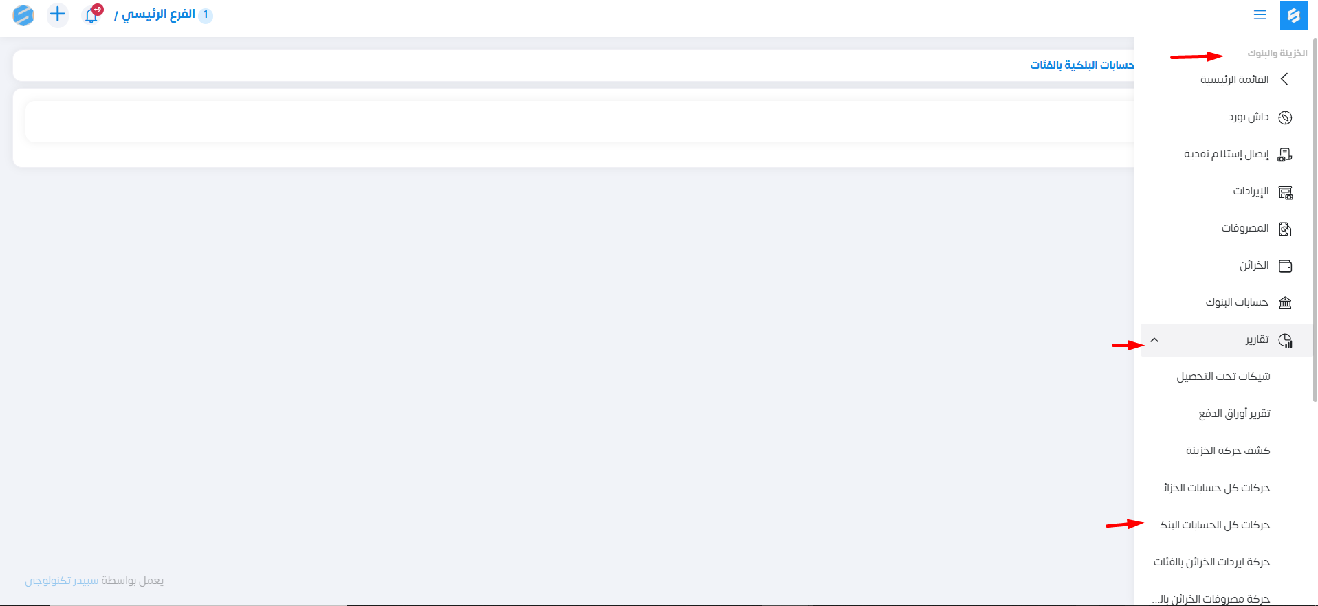 جميع تفاصيل الحركات الخاصة بالحساب البنكي بالفئات.