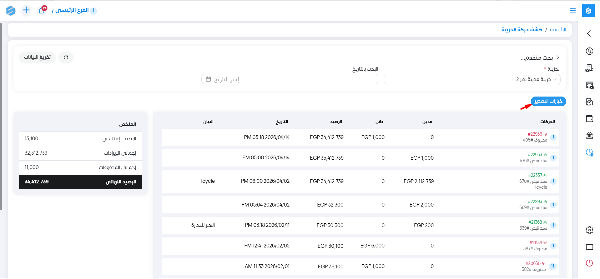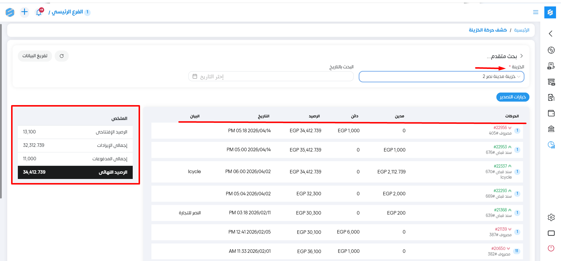 جميع الحركات التي تمت على الخزينة بتفاصيلها.