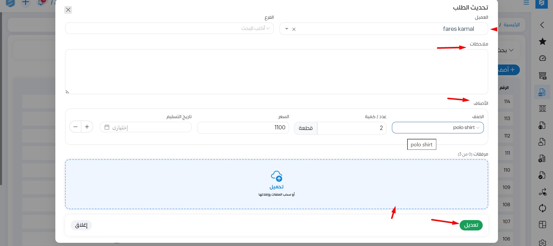 نقوم بتغيير البيانات المطلوب تغييرها ثم تعديل.
