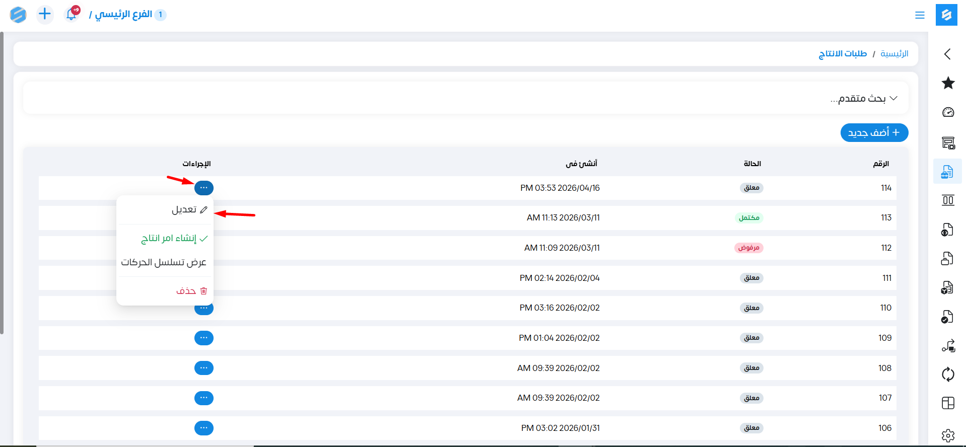 يمكننا تعديل طلب الإنتاج كالتالي: