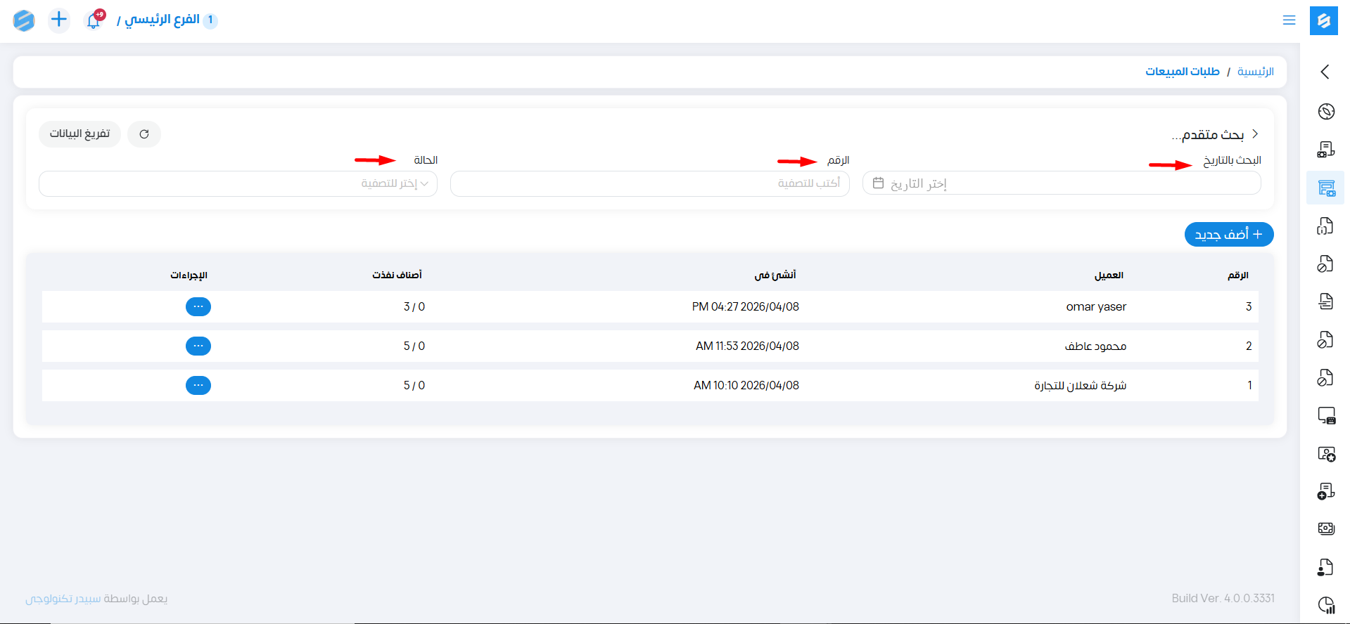 يمكننا البحث في طلبات المبيعات بالتالي: