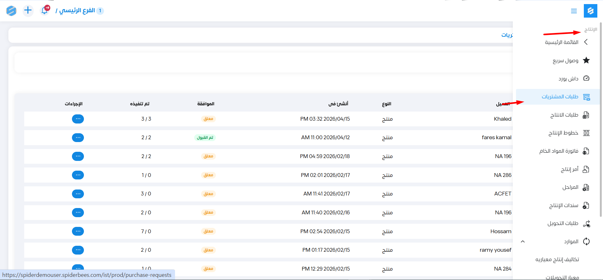 طلبات المشتريات (الإنتاج)