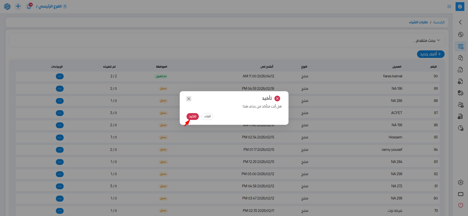 حذف طلبات المشتريات
